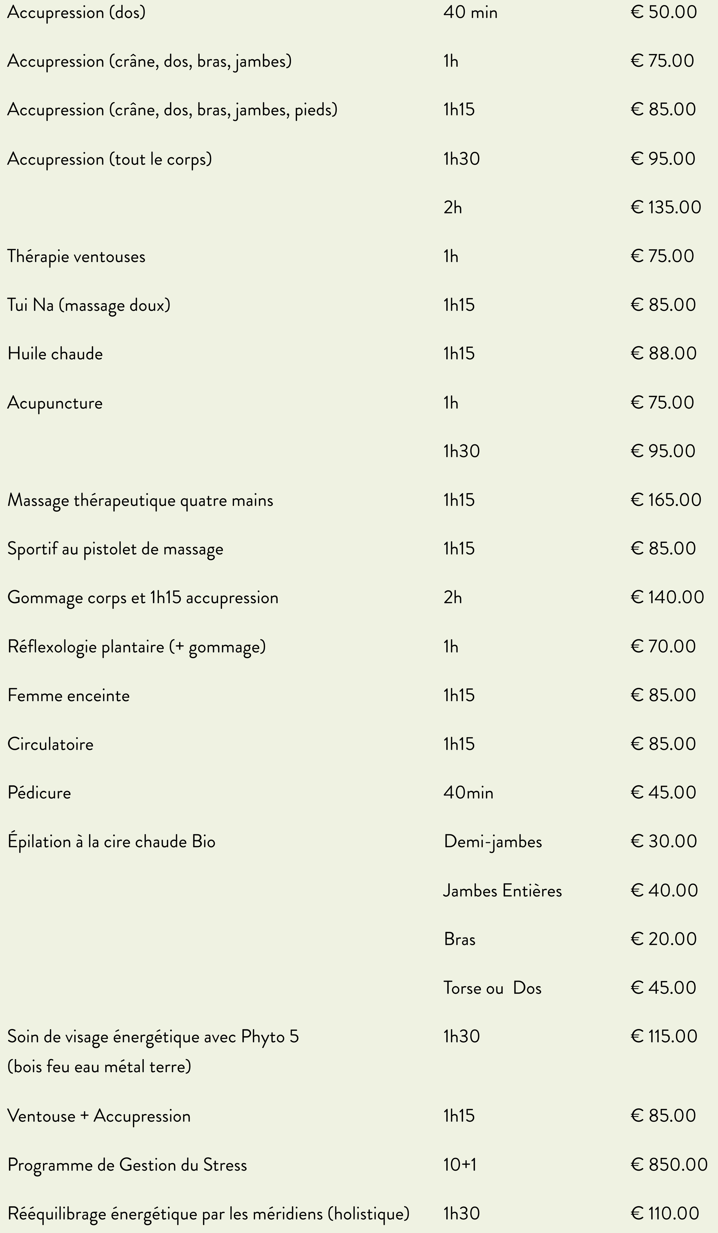 Liste de prix